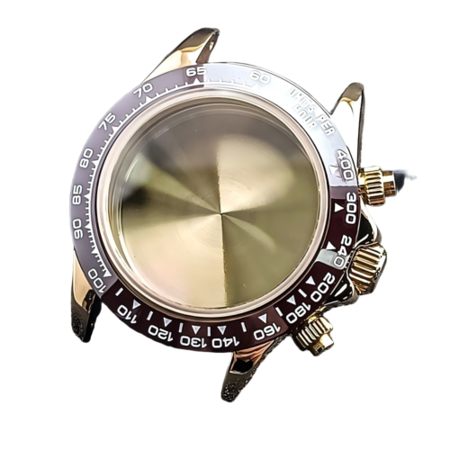 40mm black bezel, PVD gold-plated stainless steel case, compatible with VK63 movement.